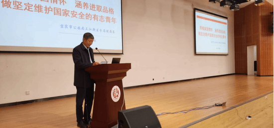 为深入贯彻党的二十大精神,坚定不移贯彻总体国家安全观,提升师生国家安全意识和素养,进一步筑牢国家安全的人民防线。10月12日下午,宜宾市公安局三江新区公安分局联合保卫处在宜宾学院临港校区求是会场开展了主题为“厚植家国情怀 涵养进取品格 做坚定维护国家安全的有志青年”为主题的“开学第一课”。临港校区所在学部(院)400多名师生代表参加了活动。活动由党委常委、党委统战部长华曦主持。