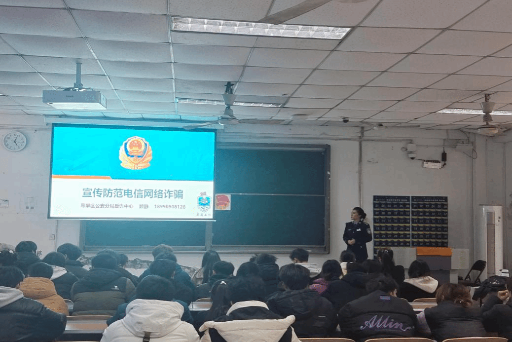 宣讲过程中,赖警官与师生们积极互动,助力师生们掌握面对类似情况时的判断和应对方法。宣讲会尾声,赖警官总结了常见的诈骗防范要点,提醒师生要保持警惕。