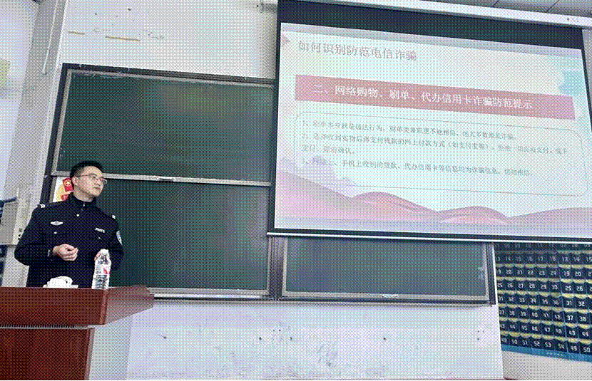活动现场,彭警官结合本地典型案例,对当前高发的电信网络诈骗类型,包括兼职刷单类诈骗、虚构事实类诈骗以及各类新型诈骗手段进行详细解读。这种以案说法的方式,将复杂的反诈知识融入真实案例,让学生对诈骗套路有了更为直观、深刻的认识,有效提升了大家的辨别能力。