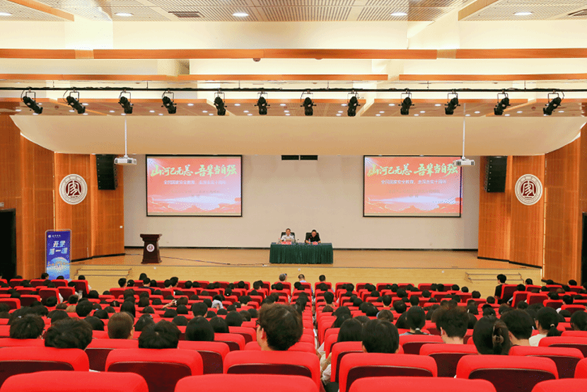 9月24日,宜宾学院在临港校区求是会堂举办主题为“山河已无恙 吾辈当自强——全民国家安全教育,走深走实十周年”的开学安全第一课。三江新区党工委委员、公安分局党委书记、局长周颖担任主讲人,学校党委常委、组织部部长杨波主持活动,临港校区2025级400余名师生代表参加授课。