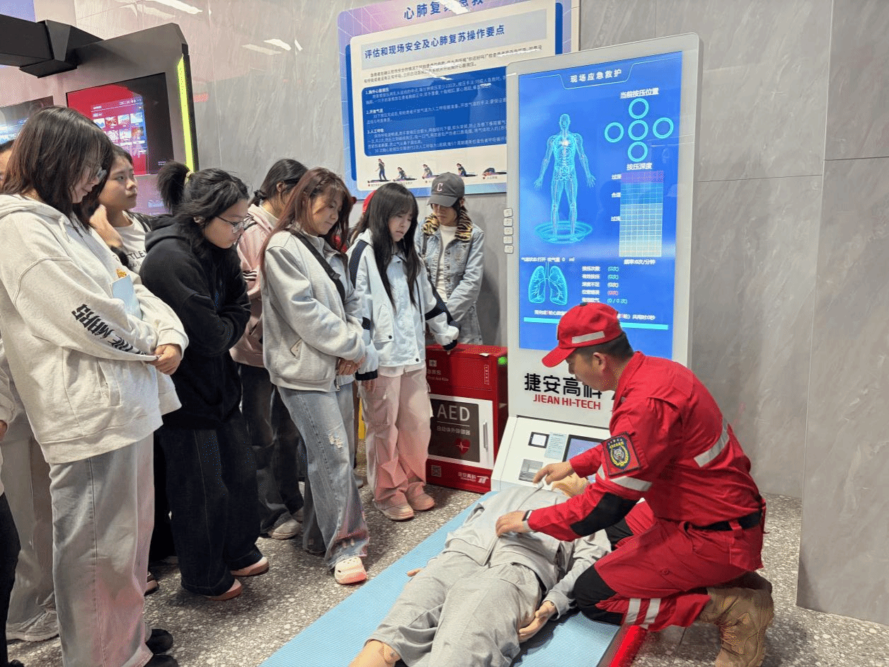 活动现场由两名专业教练分别带队,围绕心肺复苏、海姆立克急救法、索降逃生、灭火器使用等关键应急技能展开专业讲解与标准演示。教练结合真实案例,细致拆解各项技能的操作要点与实操注意事项,并一对一指导师生进行实操练习。参训师生认真聆听讲解、踊跃参与体验,在模拟场景中反复打磨心肺复苏按压频率、急救手法及索降动作要领,现场学习气氛热烈。